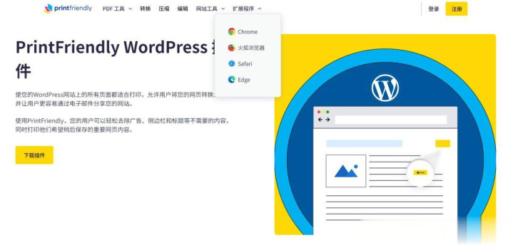 浏览器扩展:安装PrintFriendly浏览器扩展(支持Chrome、Firefox等主流浏览器)后,只需点击浏览器工具栏上的PrintFriendly图标,即可对当前浏览的网页进行优化。