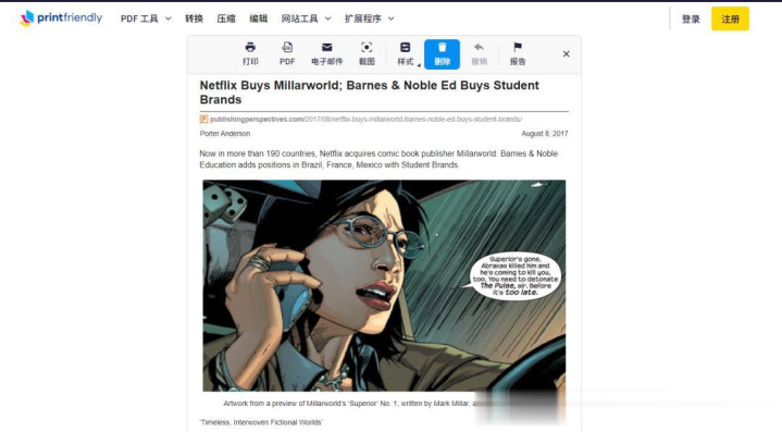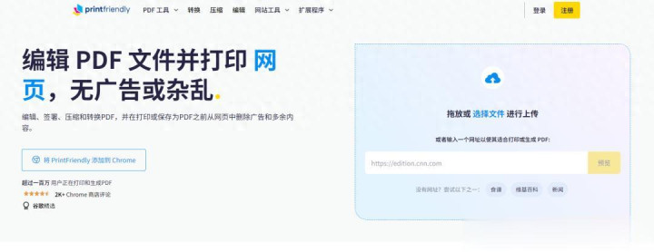 PrintFriendly是一款免费的在线工具和浏览器扩展,专门解决网页打印和保存PDF时遇到的各种问题。